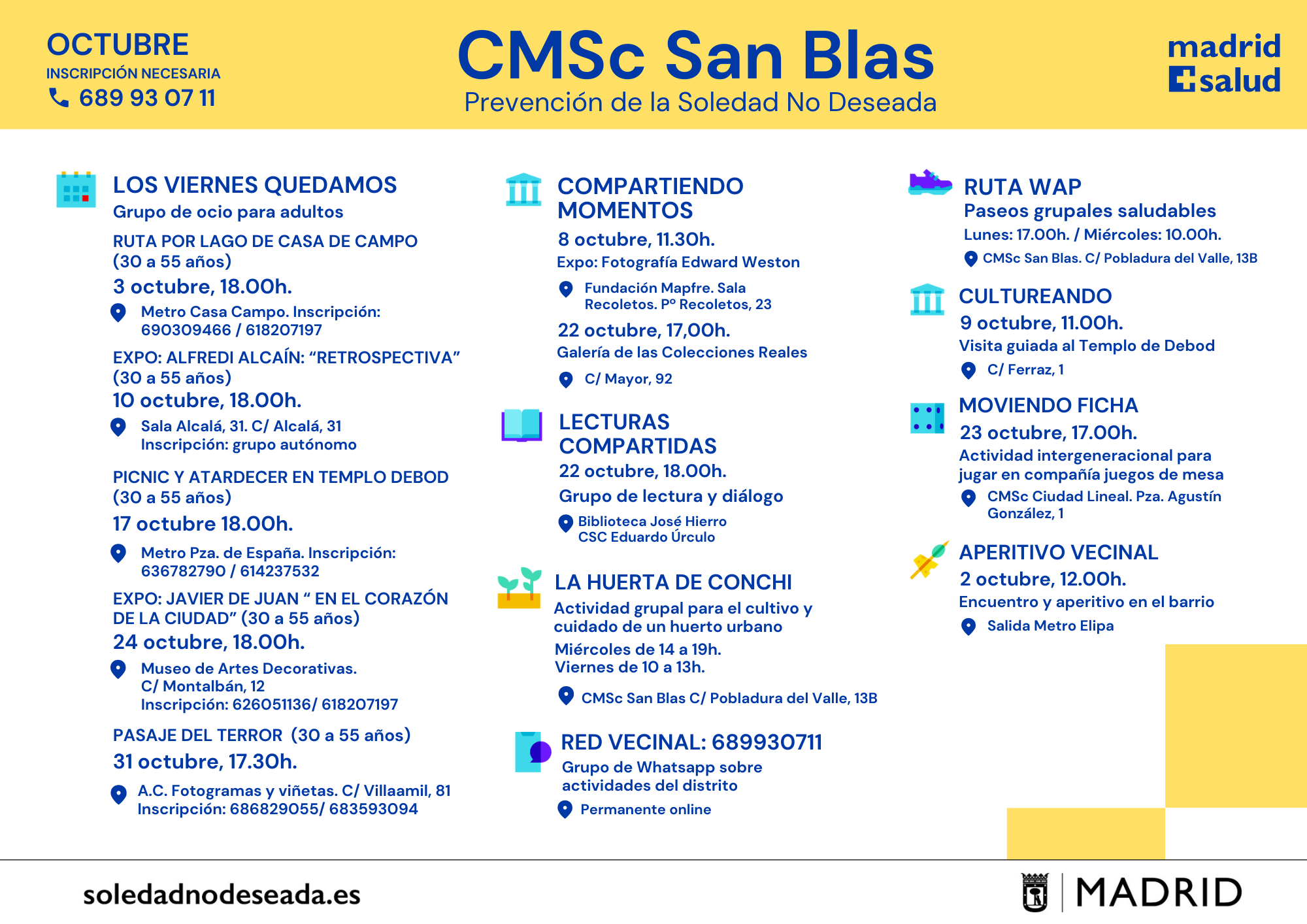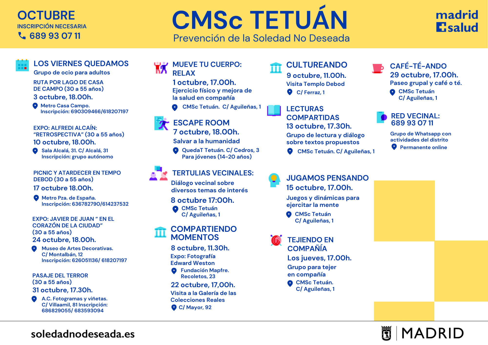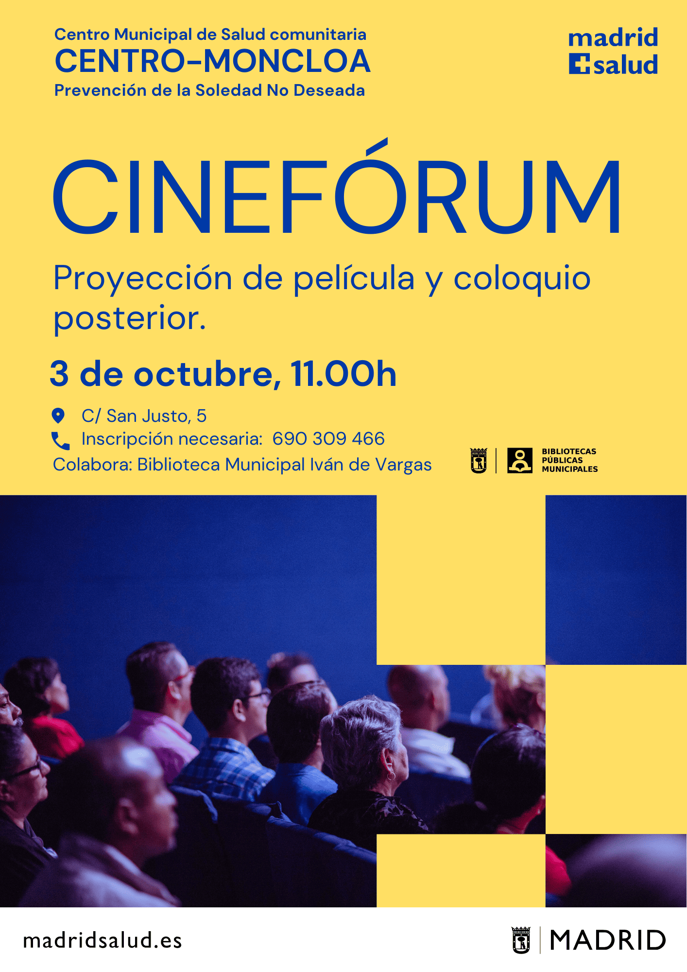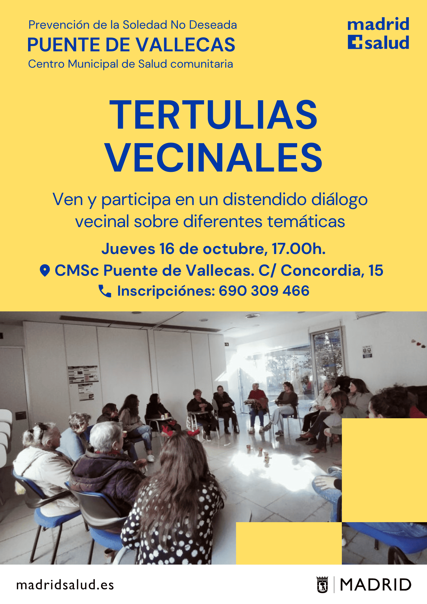 Actividades en los Centros Municipales de Salud comunitaria Arganzuela Carabanchel Carabanchel Centro Joven Centro-Moncloa Centro-Moncloa Chamartín Chamberí Ciudad Lineal Prevención Det. Cognitivo Fuencarral-El Pardo Fuencarral-El Pardo Fuencarral Especial Jóvenes Hortaleza Latina Puente Vallecas Puente Vallecas Salamanca-Retiro San Blas Tetuán Usera Vicálvaro-Moratalaz Vicálvaro-Moratalaz Villa de Vallecas Villaverde soledadnodeseada.es Todos los derechos reservados © 2021