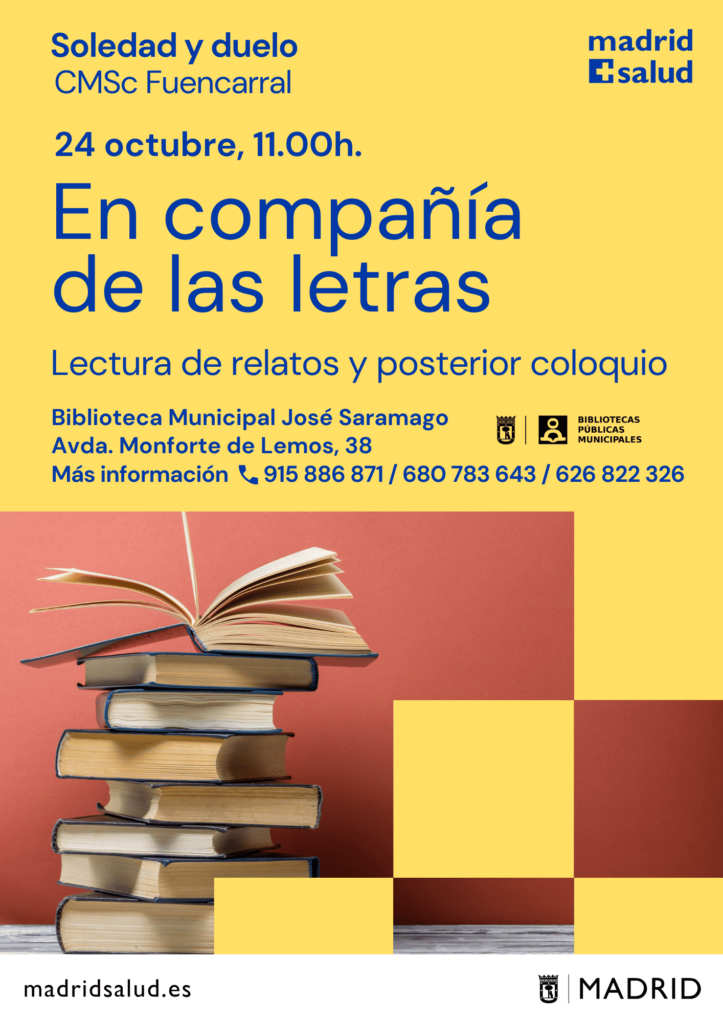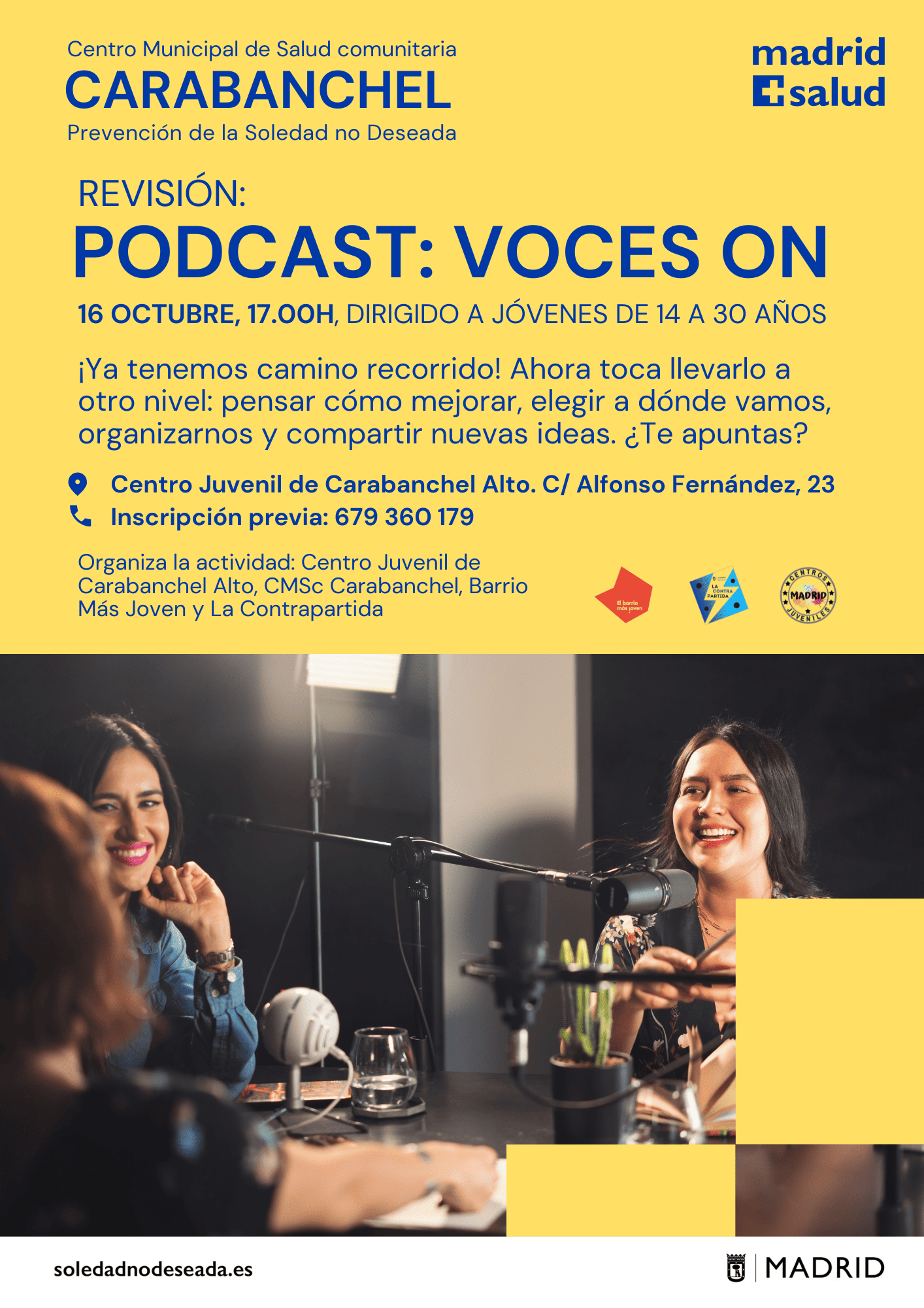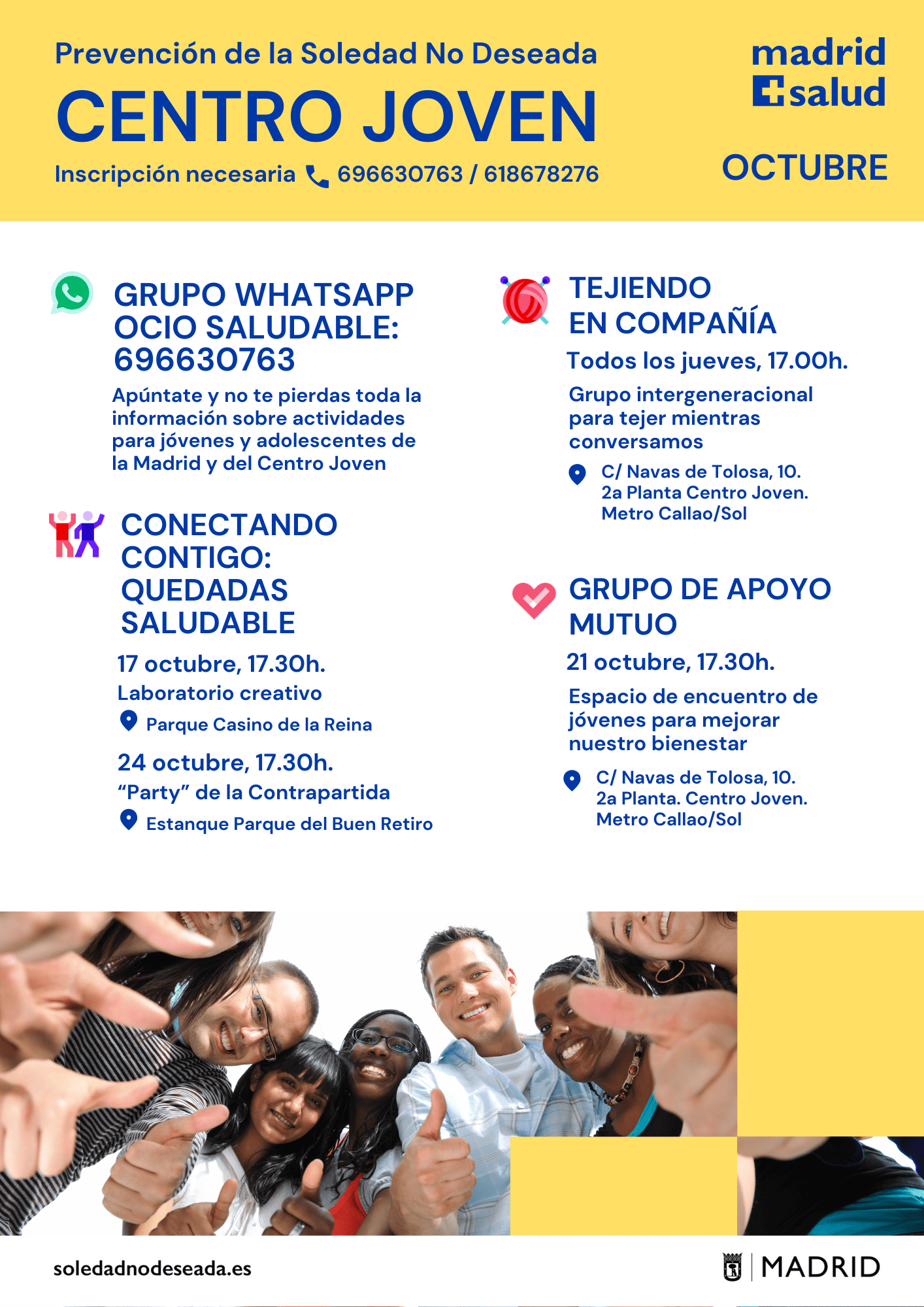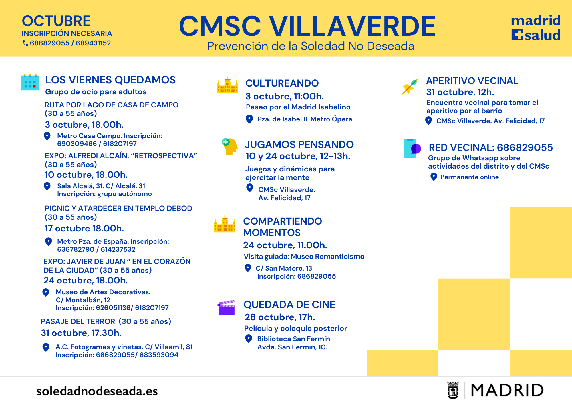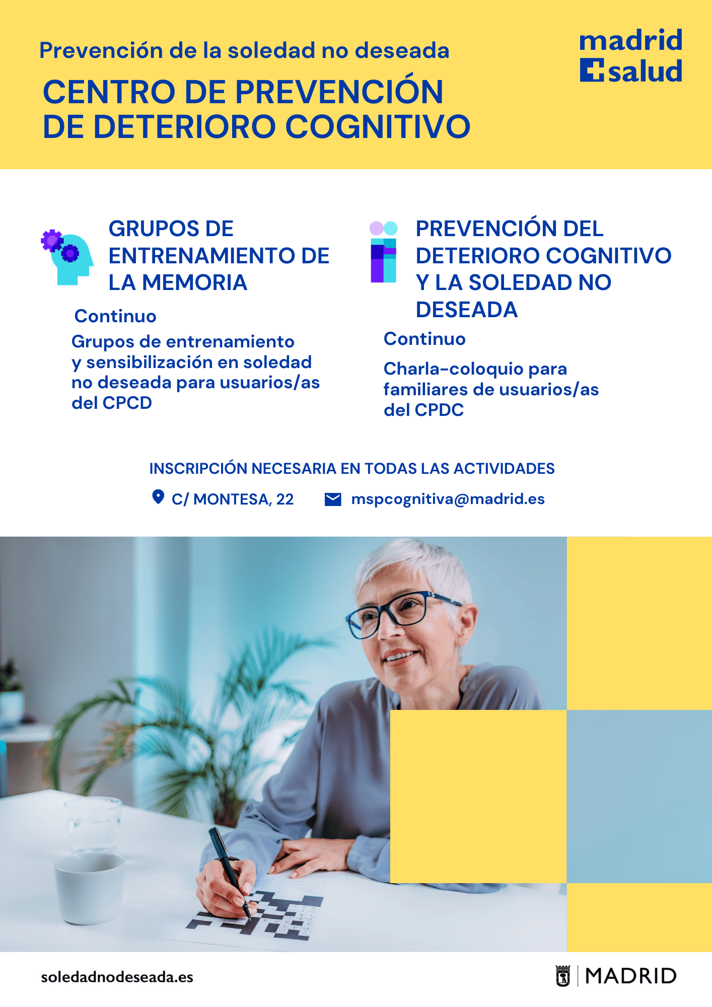 Actividades en los Centros Municipales de Salud comunitaria Arganzuela Carabanchel Carabanchel Centro Joven Centro-Moncloa Centro-Moncloa Chamartín Chamberí Ciudad Lineal Prevención Det. Cognitivo Fuencarral-El Pardo Fuencarral-El Pardo Fuencarral Especial Jóvenes Hortaleza Latina Puente Vallecas Puente Vallecas Salamanca-Retiro San Blas Tetuán Usera Vicálvaro-Moratalaz Vicálvaro-Moratalaz Villa de Vallecas Villaverde soledadnodeseada.es Todos los derechos reservados © 2021